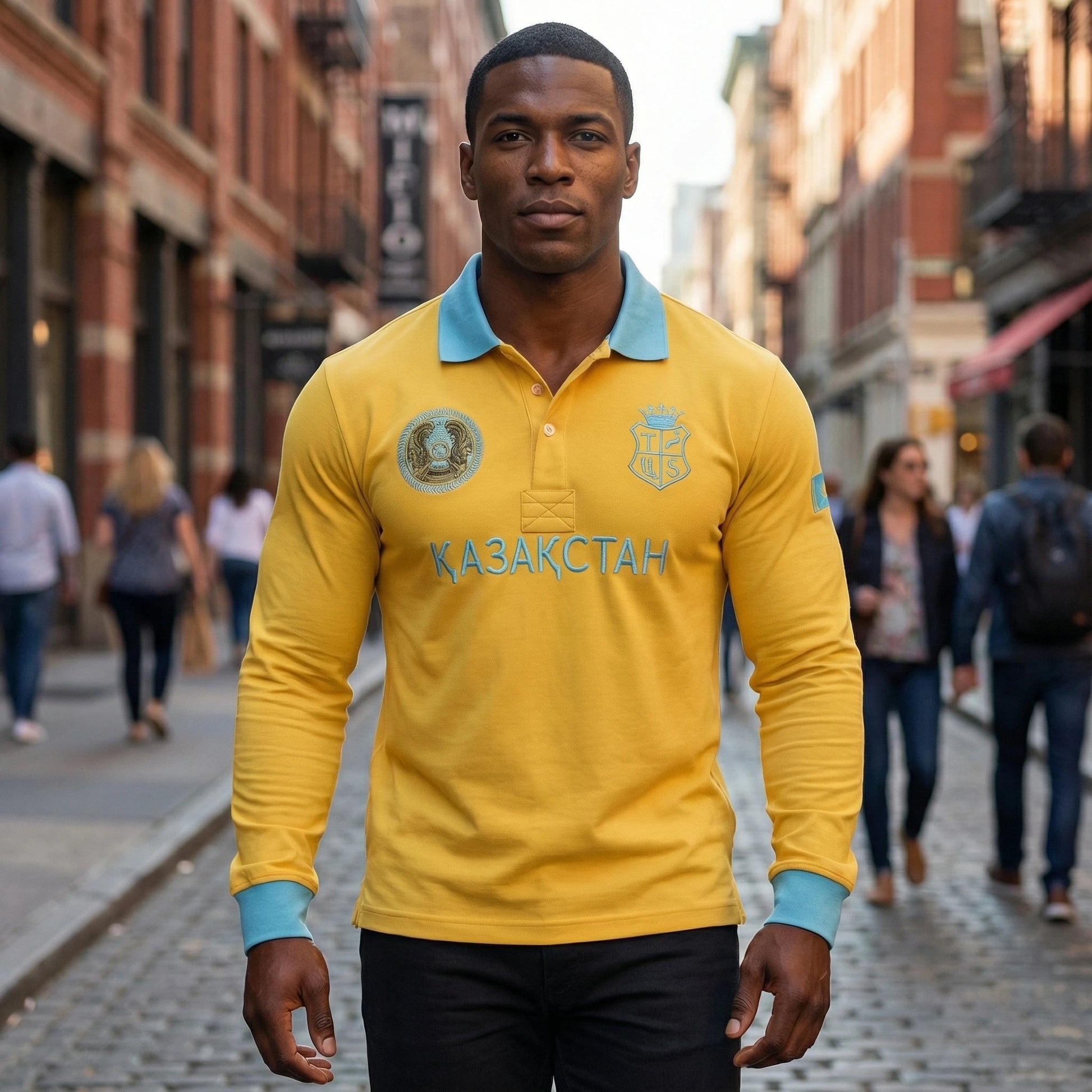 Inspired by the cultural legacy of Kazakhstan and the pride of its national identity, this long sleeve heritage polo represents tradition, strength and timeless sporting style.